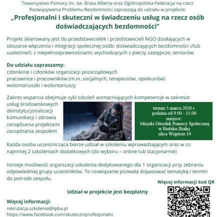 🌟 Jeszcze są wolne miejsca! Serdecznie zapraszamy na bezpłatny kurs w ramach projektu „Profesjonalni i skuteczni w świadczeniu usług na rzecz osób doświadczających bezdomności”. Proces rekrutacji jest prosty i szybki, a każdy krok przybliża Cię do zdobycia wiedzy, która realnie zmienia życie osób potrzebujących. Jak się zgłosić? 1️⃣ Wypełnij formularz zgłoszeniowy online:Formularz zgłoszeniowy– prosimy, aby …